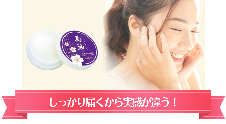こうねオイル入り馬油は、人の皮脂と成分が非常に似ているため、角質層までぐんぐん浸透します。短い時間で肌の奥深くまで浸透し、表面だけではなく肌の内側まで潤いを与えてくれます。スーッと肌になじむのでサラサラの使い心地です。