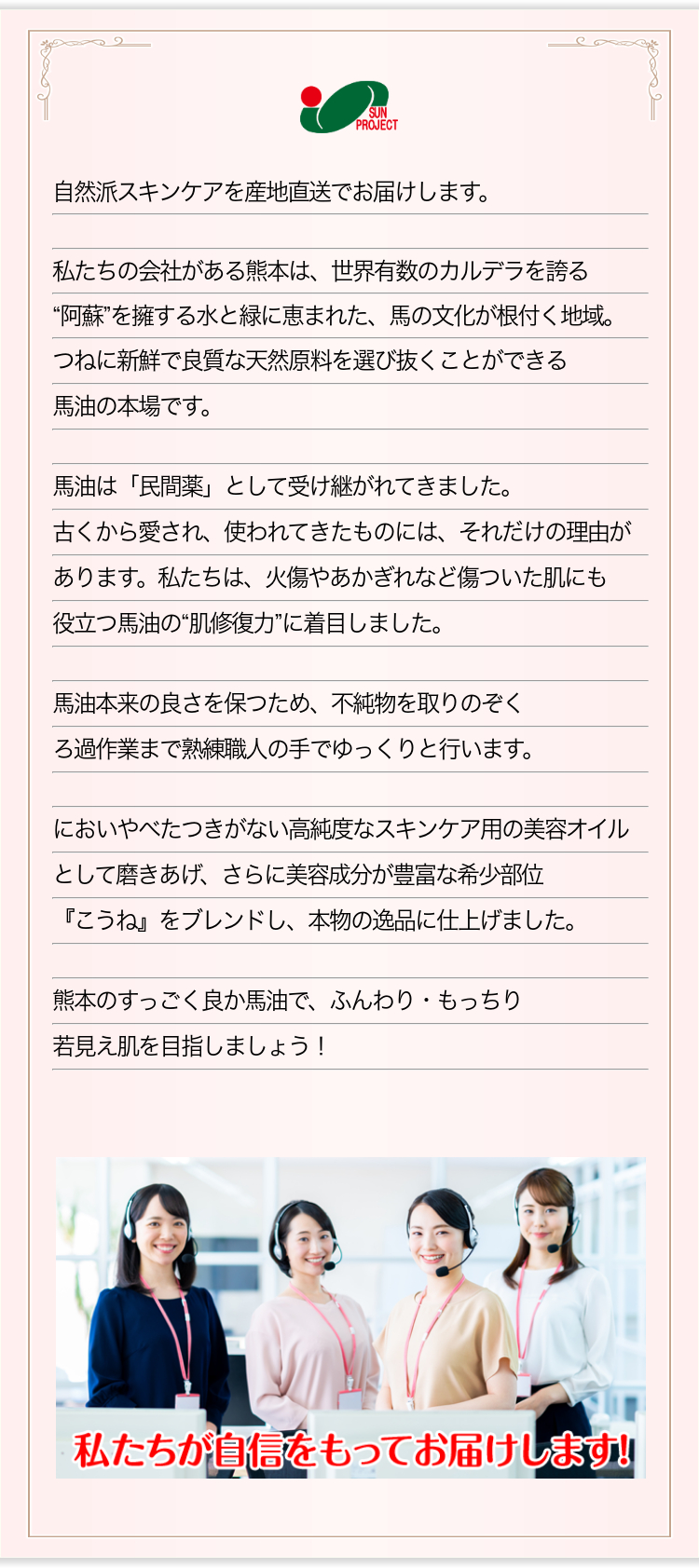 そのために開発されたのが、 こうねオイル入り馬油です。