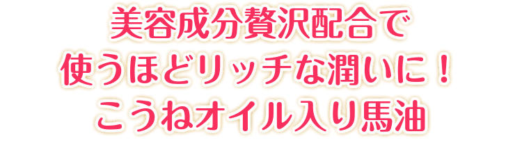 こうねオイル入り馬油だけで 驚くほどハリつやのある毎日へ!